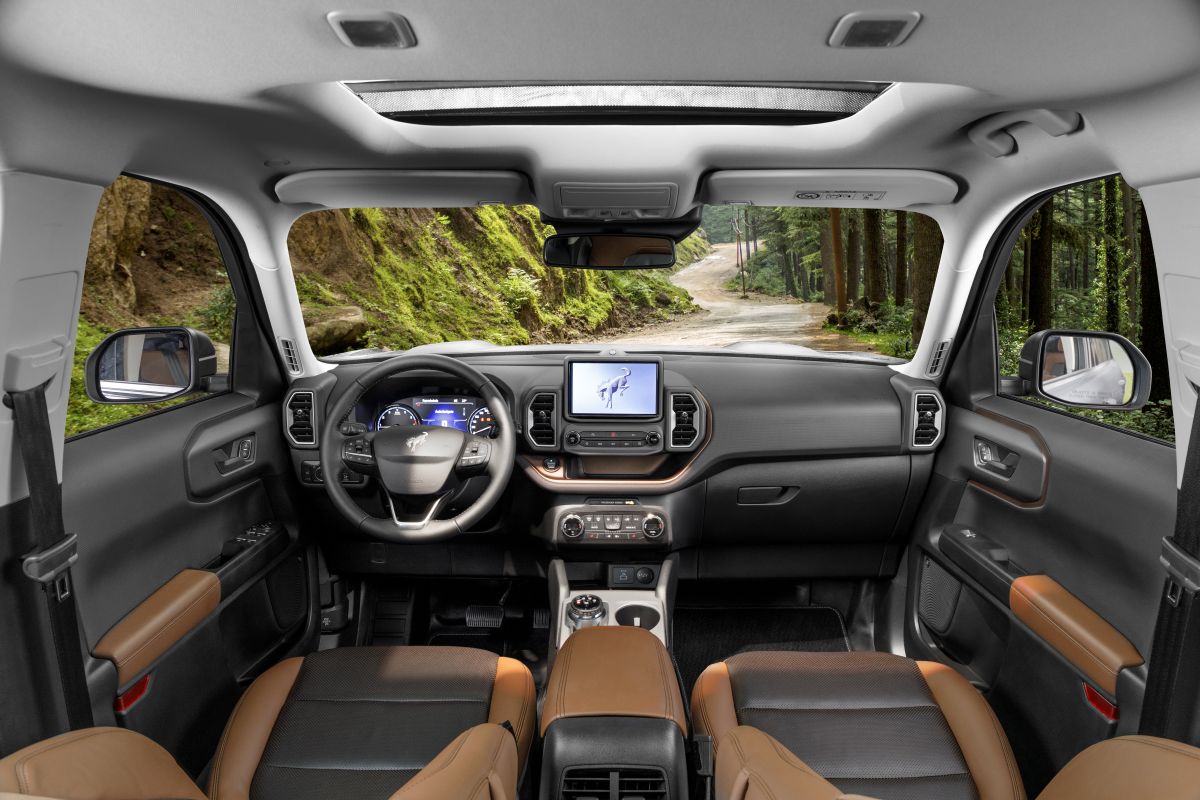 - G.O.A.T. Modes: O Bronco possui um seletor com sete tipos de terreno pré-programados chamados G.O.A.T. Modes. Assim, esses modos ajustam automaticamente a tração e outros parâmetros para diferentes condições, como areia, lama, neve e rochas.