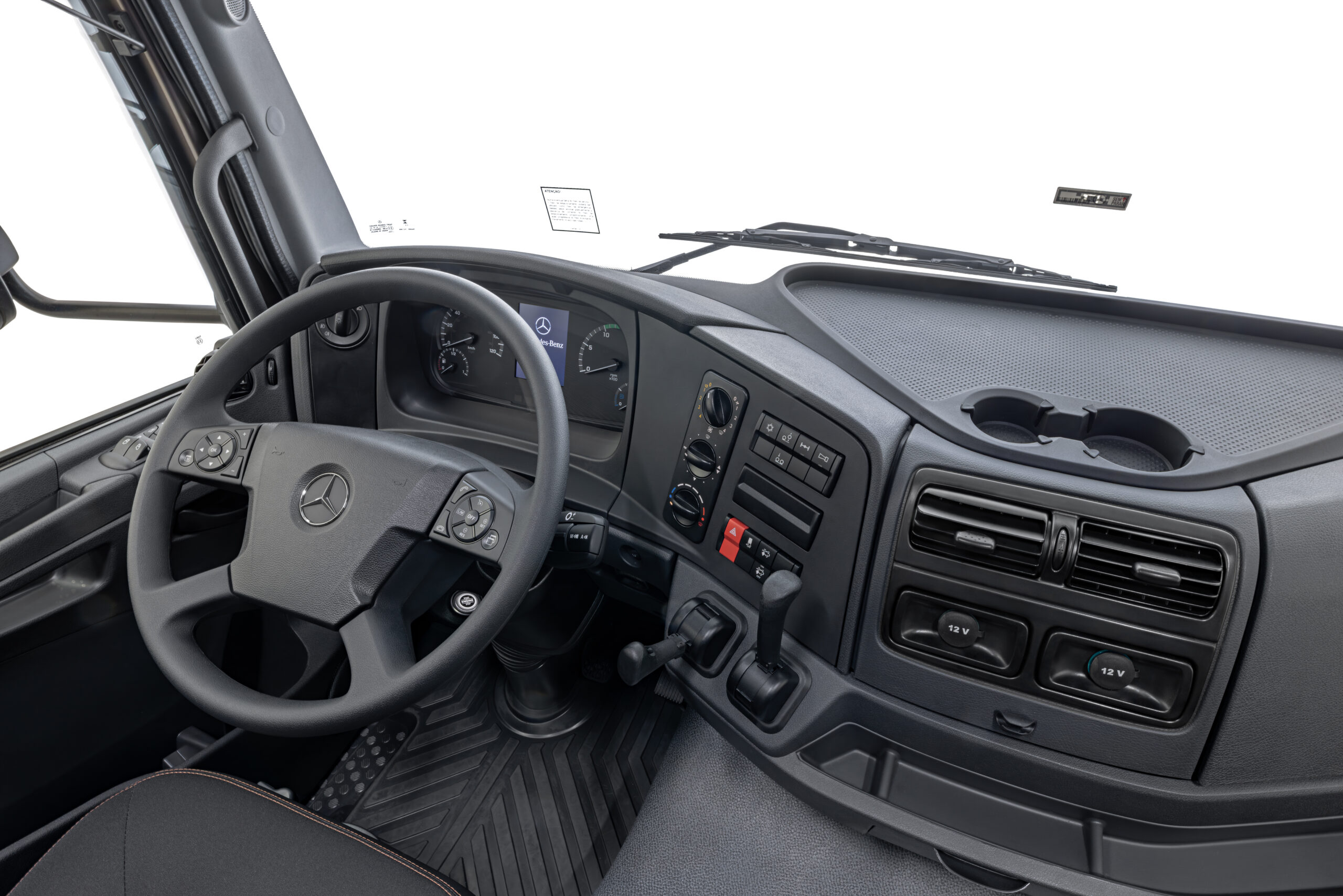 O Axor ainda oferece freio de cabeçote (Top Brake) e opção de retarder, além de luzes de frenagem de emergência (ESS) e distribuição eletrônica de frenagem (EBD).