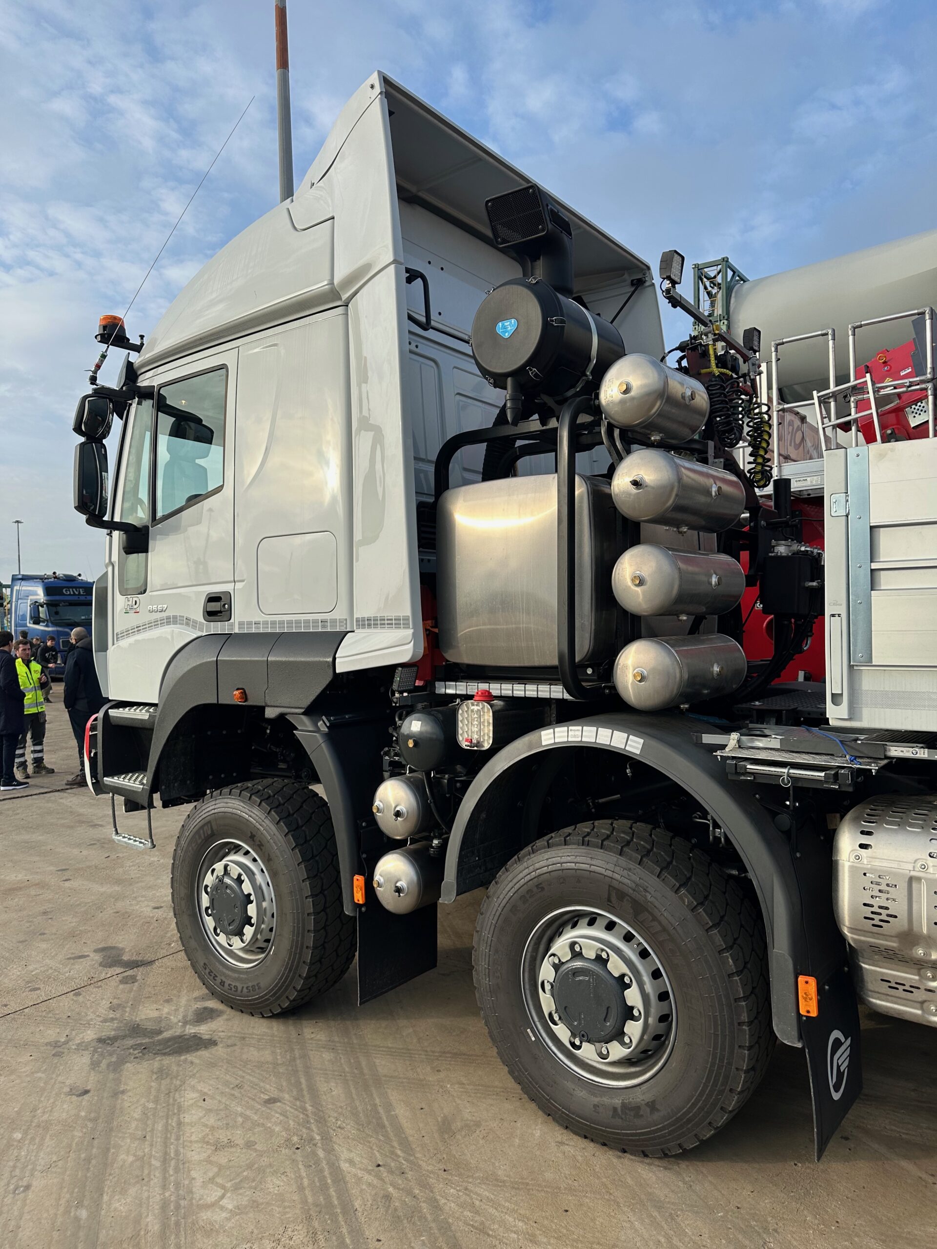 O sistema de freios consiste em discos no eixo dianteiro e tambores no segundo eixo e eixos traseiros. Os pneus são 385/65 R 22,5 na frente e 315/80 R 22,5 (duplo) no terceiro e quarto eixos. ‘O outro características do trator,’ acrescenta Acquati, ‘são o sistema de resfriamento suplementar atrás da cabine para manter o motor, a caixa de câmbio, o retardador e a caixa de transferência na temperatura ideal, e os tanques de ar adicionais, também atrás da cabine, para garantir a frenagem do reboque.