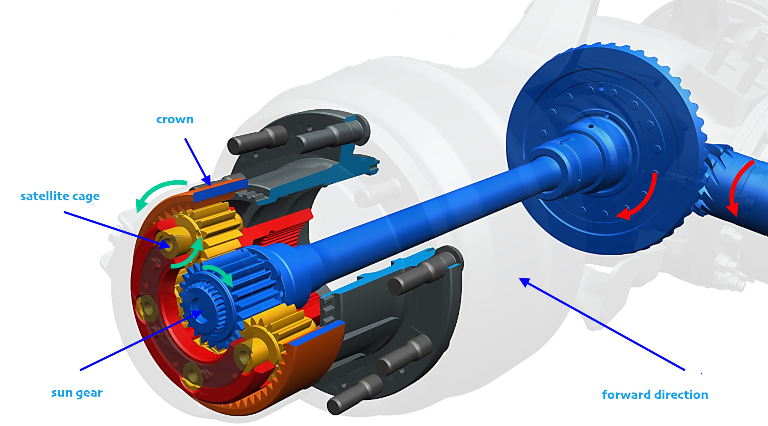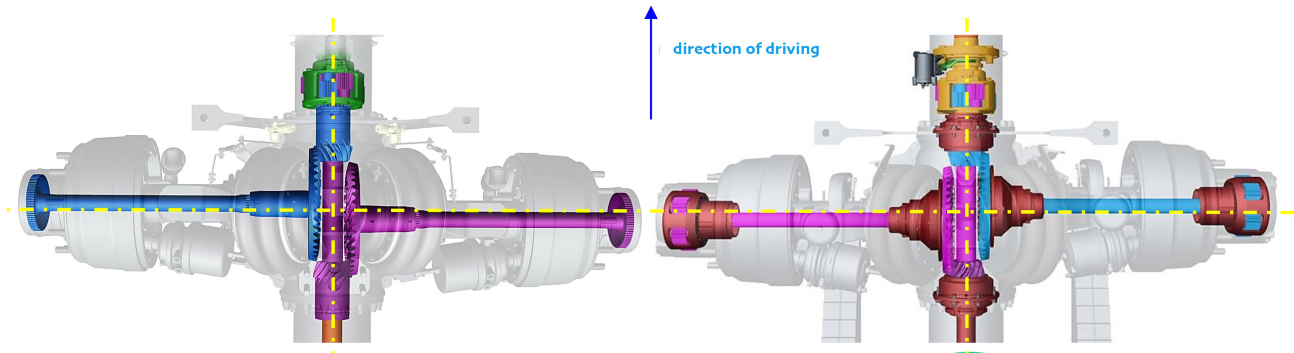 Primeiramente, trata-se da unificação dos chassis dos veículos (o mesmo deslocamento para todos), da unificação dos componentes de direção e suspensão e da unificação dos eixos como um todo. A solução original de reduções nos cubos das rodas também oferecia capacidade de torque limitada, invertia o sentido de rotação das rodas e carregava de forma um tanto desigual as engrenagens planetárias. A nova solução com o “planeta correto” proporciona carregamento uniforme das engrenagens planetárias, maior capacidade de torque, não inverte o sentido de rotação das rodas, garante lubrificação perfeita dos satélites e de todo o sistema de redução planetária e reduz significativamente as temperaturas dos cubos das rodas.